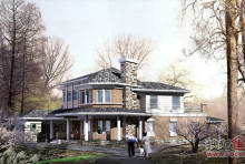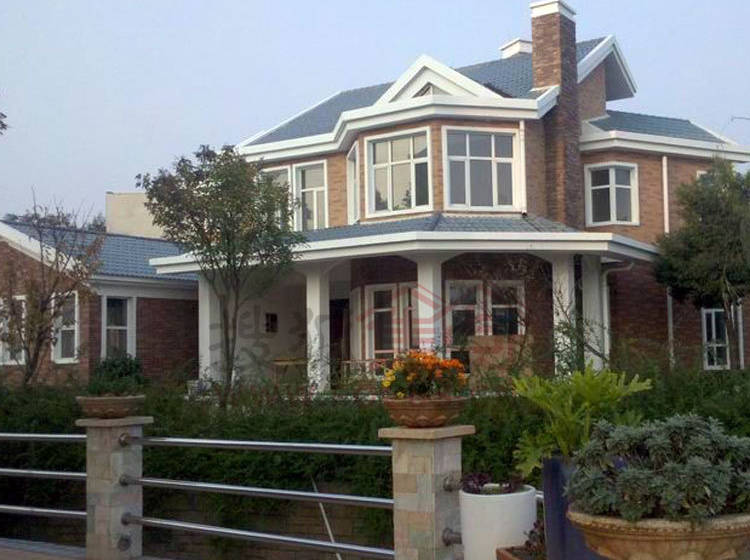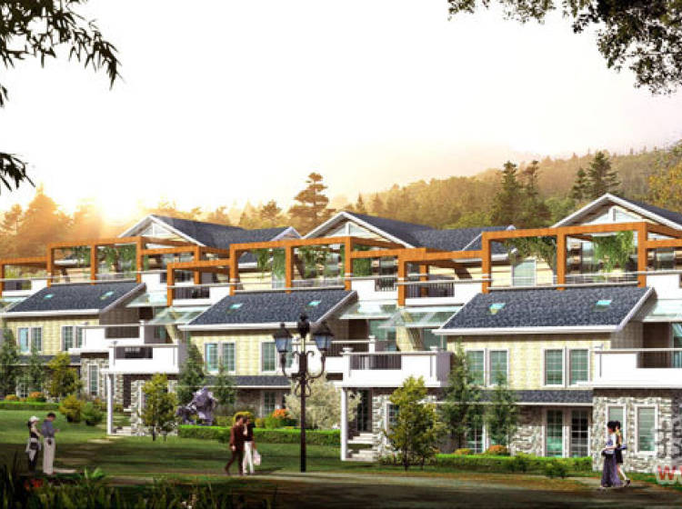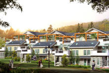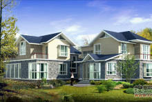 项目绕湖分布,依山势而建,使得整个社区呈现依山傍水、临湖而居的特色;同时整个建筑群落依山就势,高低错落,形成了多层庭院、多层景观的建筑格局。这样既避免了前后对视的弊端,也避免了兵营式排列带来单调和呆板,较大限度的保证了通风、采光及无限的景观视线,又显现出舒适的空间形态,保护了业主的安全性与私密性。本项目建筑设计以现代北美风格为蓝本,打造了一种纯粹的、低密度的现代简约北美别墅群落,外观简洁大方、色彩明亮欢快,建筑细节精致细腻,使得整体建筑精致中见典雅、丰富中见韵味,充分体现北美风情与居住小区宁静、舒适的气氛。
