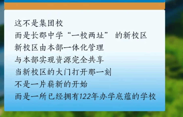 首先看办学性质:长郡中学奥体城校区,不是集团校,不是挂牌校,而是一校两址。这意味着它与长郡智谷中学、长郡会展中学等“挂名”分校完全不同——奥体城校区是真正意义上的长郡中学“嫡系”新校区。