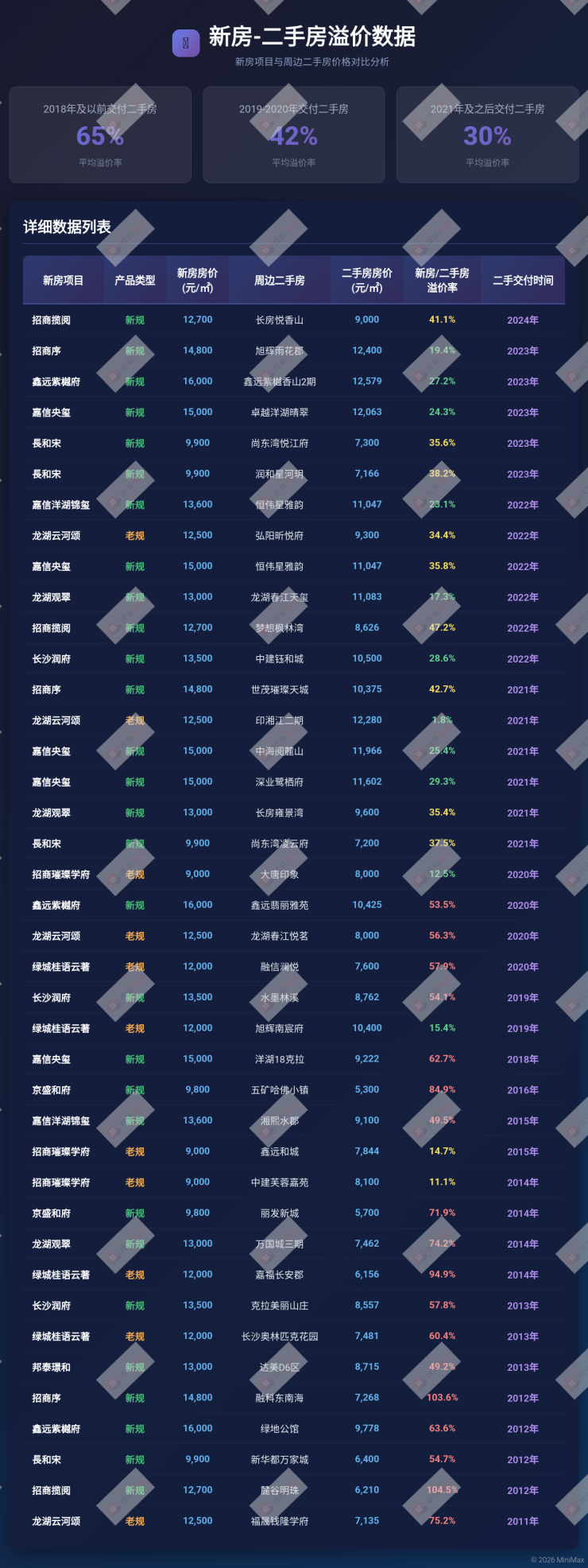 意味着现在长沙在售的新房项目,开发商可运用的利润空间到了一个非常可观的水平,而且多年以来房地价差不断扩大,这是商品房产品迭代的根本前提,也是新房和不同年代二手房价差拉大的根本原因。