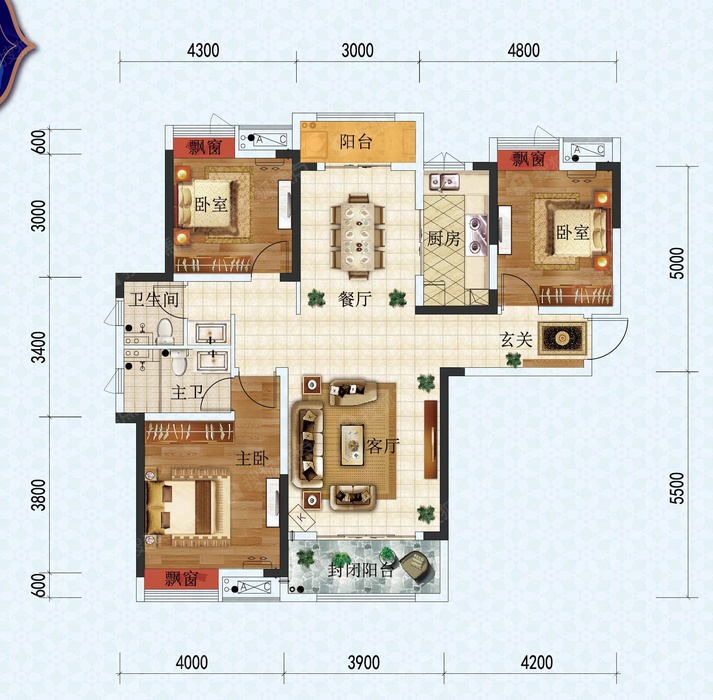 该户型位于2号栋,面积为120平3房2室3卫,开发商为交通集团排名前列在长沙的项目,在户型设计上的特点为舒适型产品,没有刻意缩小卧室的面积,格外扩充客餐厅的面积。该户型带双阳台,南北通透通风采光上都很不错,主卧与其他次卧分开,安静且带有隐私性。每个卧室都有飘窗赠送,可以更好的眺望观景。客卫也采用了干湿分区的设计,保证了洗漱和使用洗手间可同步进行,也保证了整个空间的干净。