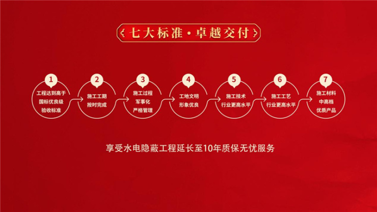 为把控施工质量与工艺标准,由工人、班组长、项目主管,到监理、工程部经理、工程总监,再到总经理、集团巡检组成的8级质量先进交付工程管控体系,实施层层把关,所有环节还要经过客户满意度、质量验收评定、班组工人水平、文明形象考核,从每一个岗位、每一道工序、每一个细节,严抓、严管、严控,确保每项工程质量。