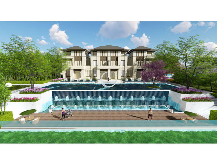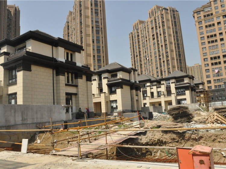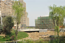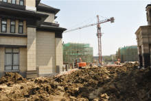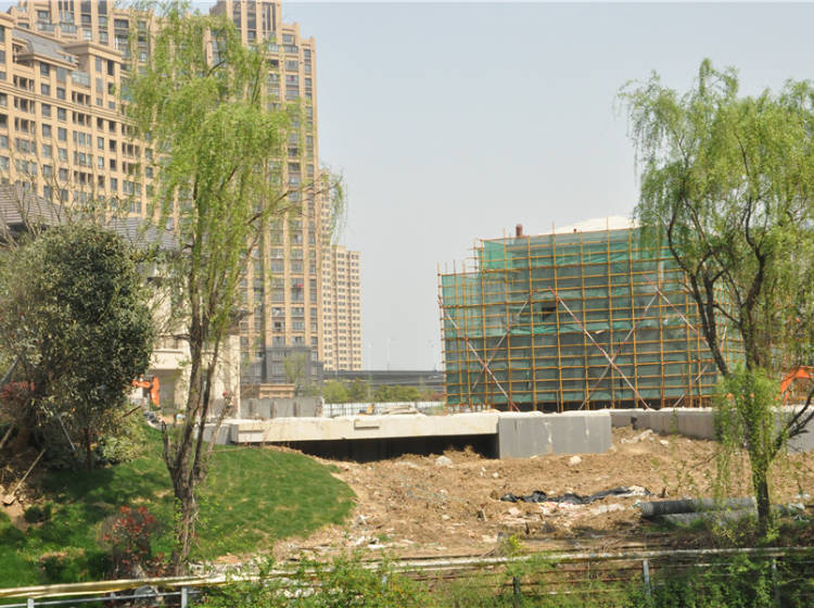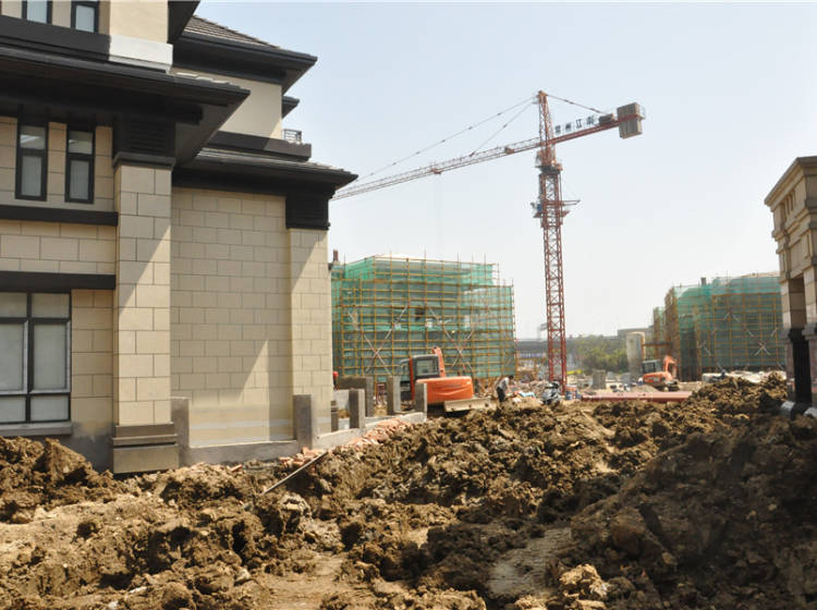 项目基地地势较平坦,北侧为已建并投入使用高层住宅,南侧为别墅区。共计170套别墅,目前正在紧张施工中。