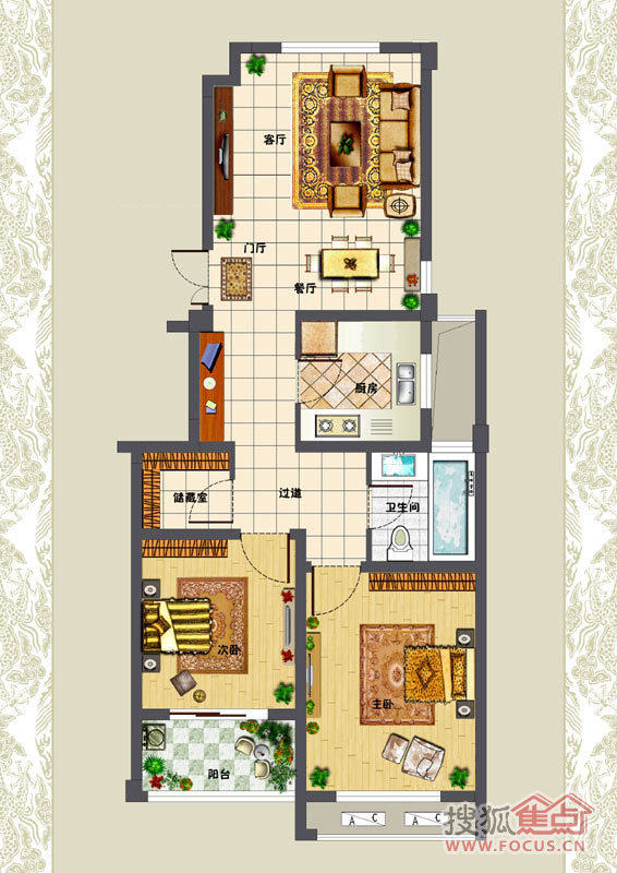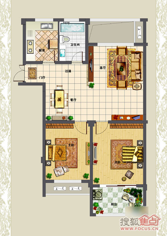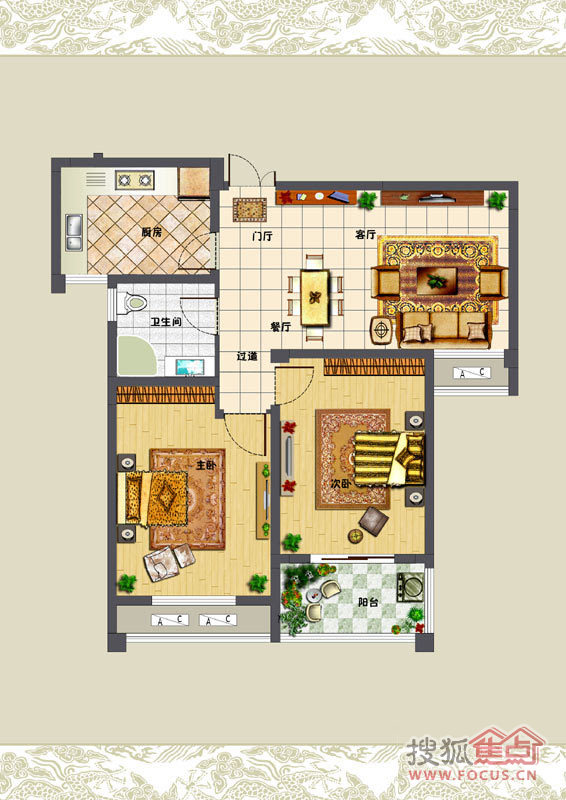 2室2厅1卫-3#楼A户型-2室2厅1卫1厨