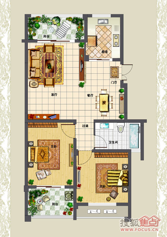 2室2厅1卫-3#楼C户型-2室2厅1卫1厨
