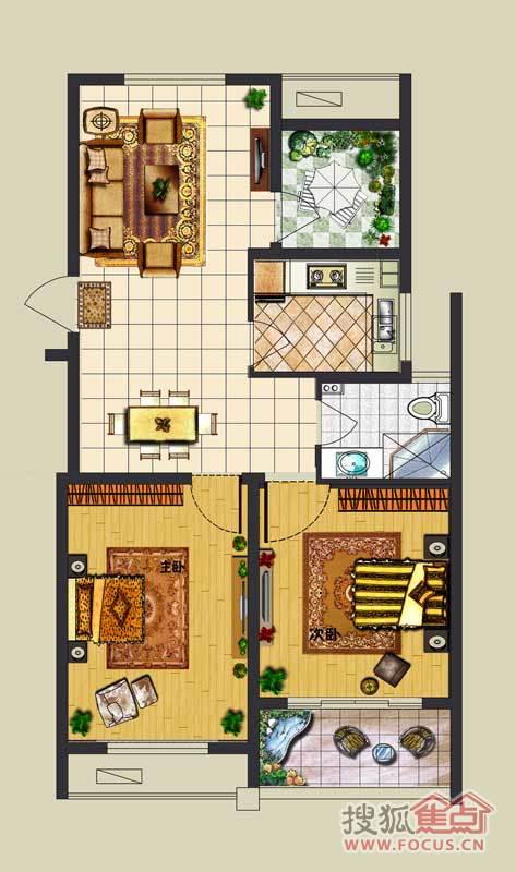 2室2厅1卫-3#楼B户型-2室2厅1卫1厨