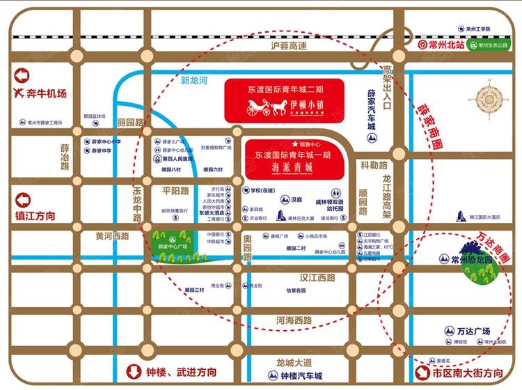 从新北万达广场出发,进入通江中路行驶1.1公里,右转进入龙城大道行驶240米,进入龙城大道高架行驶2.9公里,靠右前方行驶进入龙江路高架行驶270米,行驶1.6公里,靠右前方行驶进入龙江北路行驶1.4公里,左转进入黄河西路行驶320米,右转进入丽园路行驶1.1公里,到达项目。
