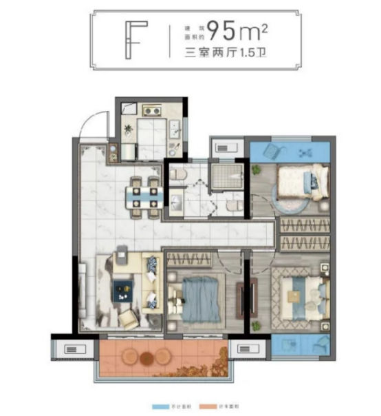此次首开的建筑面积约95m2-125㎡户型,空间尺度也能做到奢阔宽敞。户型标配的宽阔的一体化餐客厅,既是休闲畅聊的“会客厅”,亦是孩子的“游乐园”。