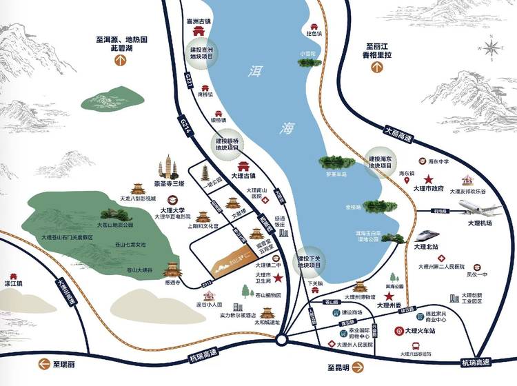 项目地处大理洱海西岸田园风光带,是大理市旅游地产的核心地带,地块周边环绕代表大理历史文化的景点:苍山世界地质公园、洱海、崇圣寺三塔文化旅游区、大理古城、感通寺、寂照庵、观音塘等,历史文化底蕴极其深厚。