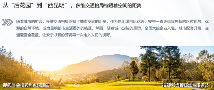 温泉山谷国际康养度假区(简称“温泉山谷”)项目占地4.29万亩,依托康旅集团的“旅游+”战略,将形成以康养产业链为核心,以医药康护、运动康体、文旅康乐教培康育、商服康娱、宜居康养六大产业为支撑,构建“六位一体、互融互通”的产业链生态系统。未来,将以此项目为圆心,辐射整个安宁,打造温泉文旅重镇。