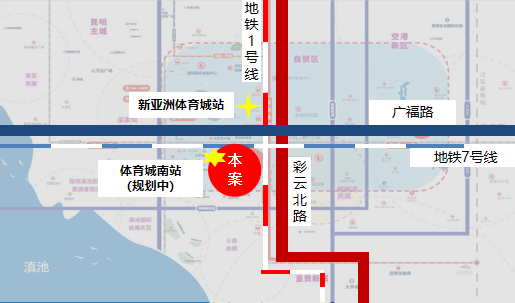 毗邻地铁1号线,7号线(规划中)交汇,无缝衔接昆明高铁南站、长水国际机场及南部汽车客运站,形成立体交通网络,覆盖全市及周边城市客群。