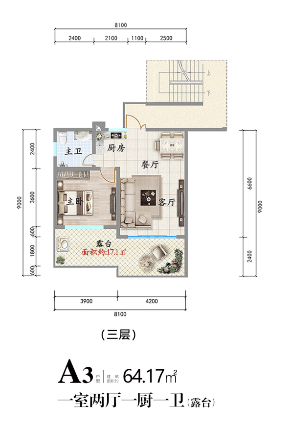 亮点:8.1米面宽,19.8㎡星空露台免费送,明厨、明卫设计