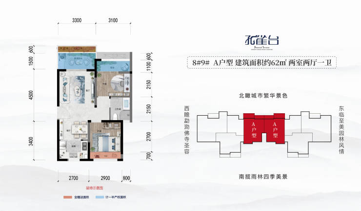 A 户型|建面约62㎡ 两室两厅一卫