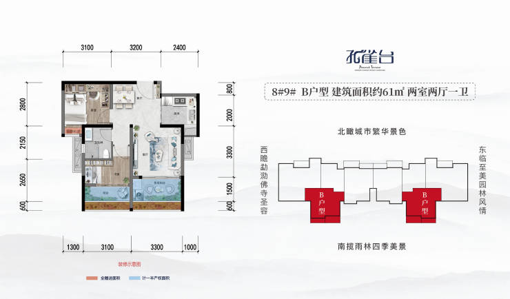 南北通透三房户型 北瞰主城南瞰雨林景观