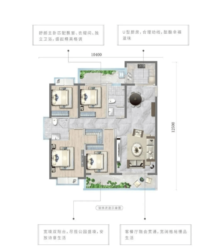 面积段:98㎡/106㎡/107㎡/114㎡/136㎡(4房)