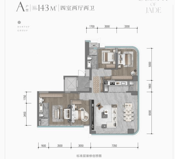 3栋:143㎡(四室两厅两卫),4栋:195㎡(四室两厅三卫),