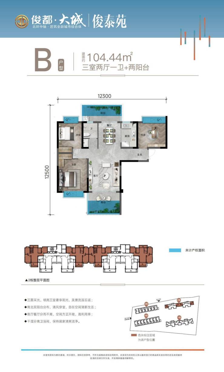 【高层视野】:坐北朝南、视野开阔,通透性好。
