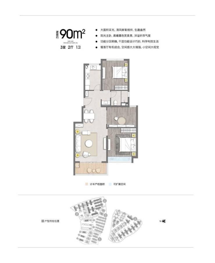 总层高6-8层,一梯两户,板式通透,产权面积89平米,使用面积82平米左右,90%的超高得房率,单价8300元/平米,总价72-78万