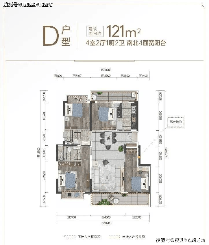 洋房户型:建面约121㎡,四室两厅两卫,均价约8888元/㎡起。