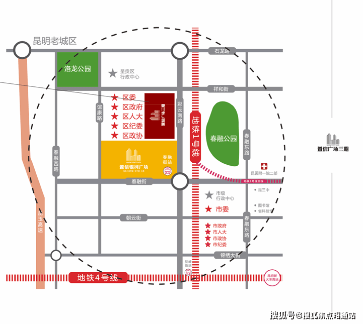 且本项目的地铁站春融街1号线支线经过市政府即可直达昆明新南站,直线距离仅3公里。