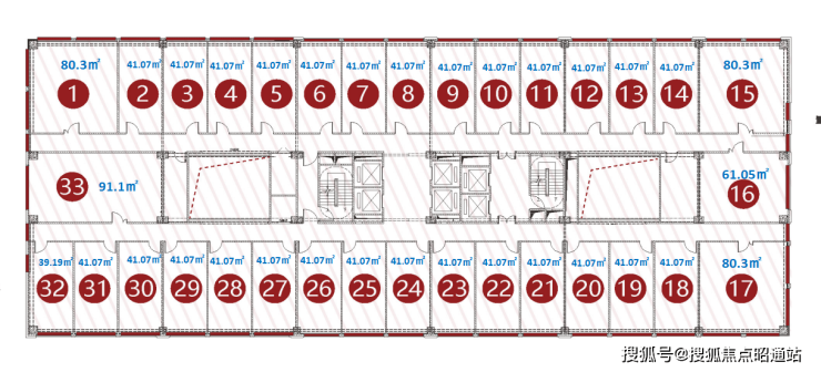 G栋每层公寓共计33套。