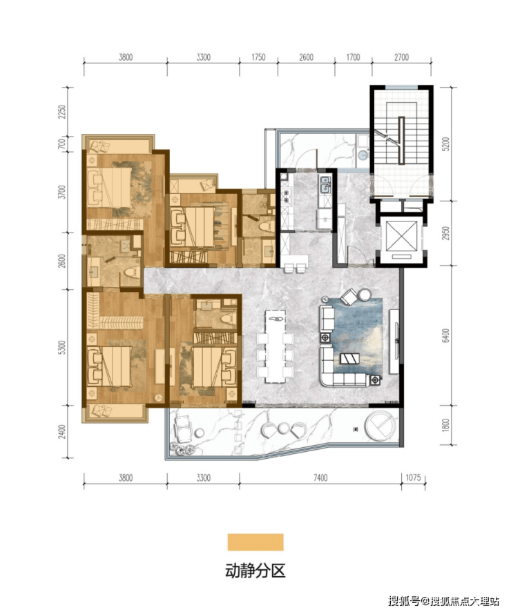 同时,户型进行了动静合理分区,公区可享受无边界的景观资源,但卧室的私密性完全不受影响。此外,还有飘窗全赠送面积,生活阳台半赠送面积,可拓展空间大,整体户型具有独特的居住舒适度感。