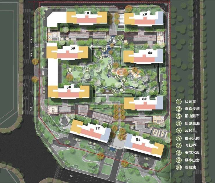 建筑类型:拟建8栋住宅,总高15-25层,楼栋呈围合式布局,小区中间拥有大中庭,且配有部分底商。