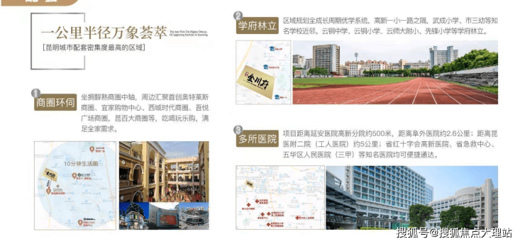 生活配套:商圈环伺:坐拥醇熟商圈中轴,周边汇聚首创奥特莱斯商圈,宜家购物中心,西城时代商圈,吾悦广场商圈,昆百大商圈等。