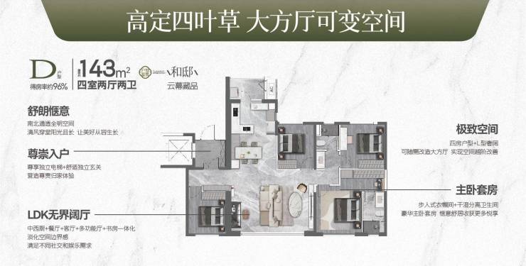 建面约143㎡ 四室两厅两卫 | 得房率约96%