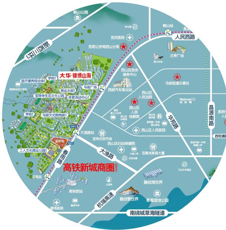 高铁:距离高铁西站仅约800米,规划2027年建成,届时将连通昆明南站;