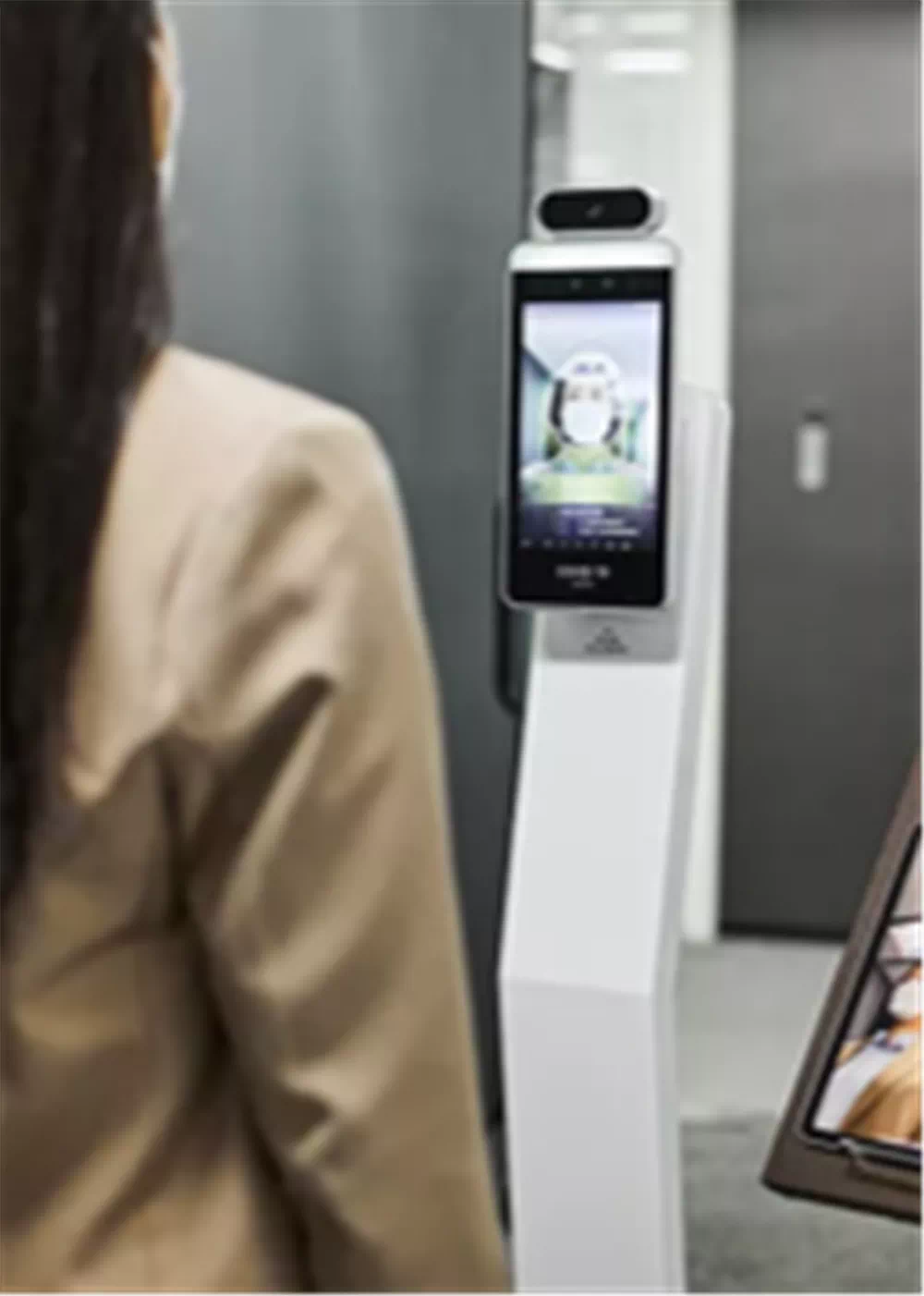 在智慧通行方面,当客人完成入住流程以后,乘坐电梯时,不需要使用电梯卡,可直接扫脸乘梯,扫脸后会主动识别入住楼层,支持多人同框同时识别;进入客房时,同样不需要房卡,可直接扫脸识别,仅需2秒,房门就会自动开启,还支持房间多住客识别。同时,健身房、瑜伽房、会议厅、餐厅等营业场所均可刷脸通行。