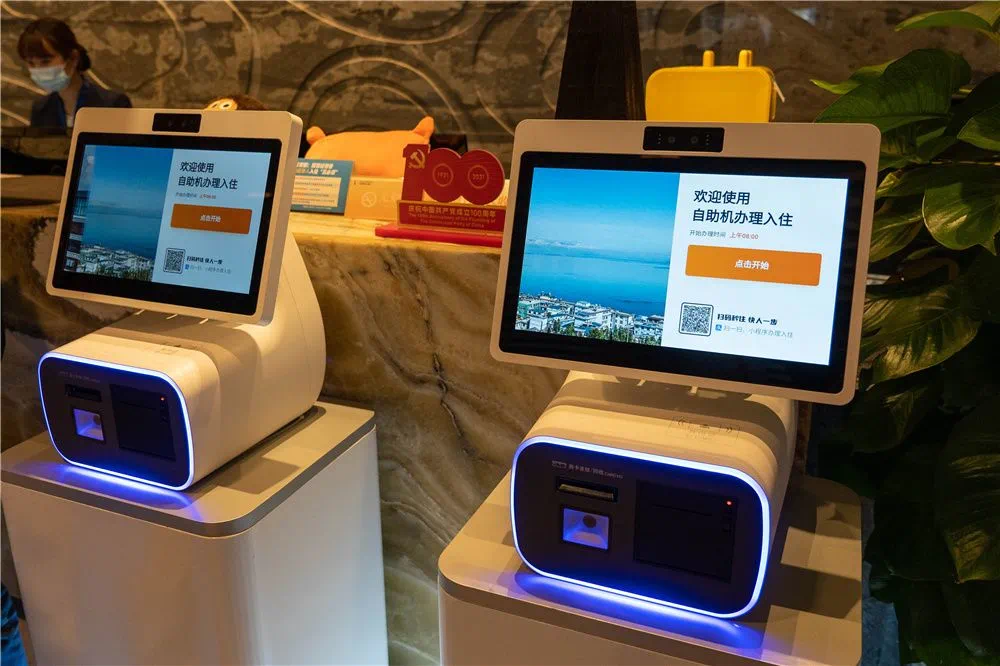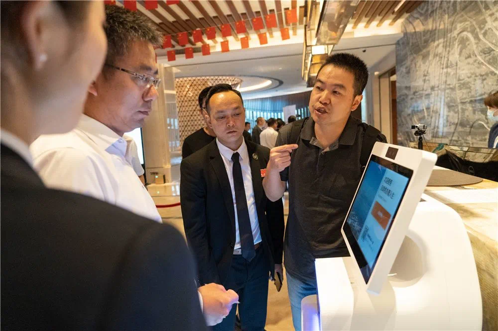 在智慧大堂方面,酒店大堂设置有相应的自助机。当客人需要入住酒店时,直接通过自助机或手机端支付宝菲住布渴小程序刷脸极速预订,可在线360度全景选房,无需到前台办理入住手续。退房时,可直接通过小程序一键退房,直接离店。小程序还可预约发票,离店时客人直接拿走发票,无需等候。无论是平常时间,还是旅游高峰期,都可以给客人带来畅通、高效、舒适的入住体验。
