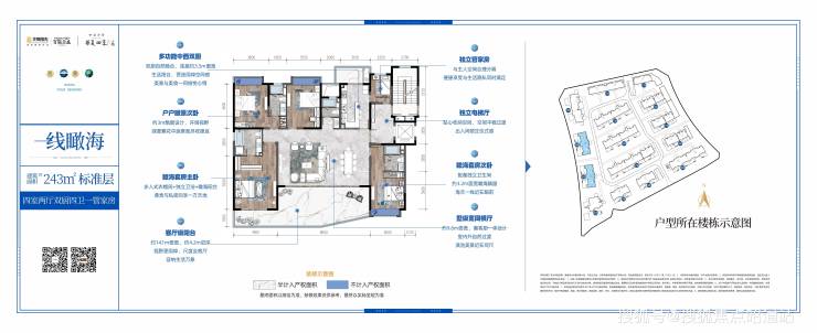 243户型,一线头排,厅级阳台,瞰海套房主卧(约1041-2051万)