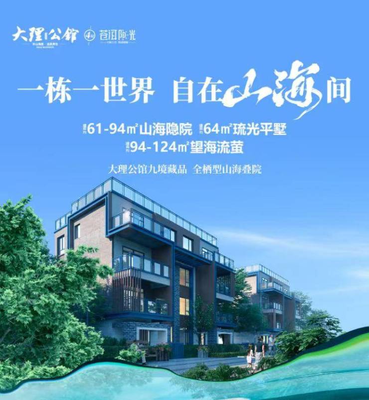 大理公馆“半山海景 温泉养生”。依托大理得天独厚的区位交通、自然气候、宜居环境和丰富多彩的旅游资 源以及大理最佳观苍山、瞰洱海的半山海景区位优势倾情打造。项目配置高端国际精英会所、度假酒店、500亩生 态养生公园、国际双语幼儿园、大型购物超市、无边际游泳池、温泉SPA等高端配套并已投入使用;由高端海景别 墅、海景洋房、海景精装度假公寓、白族民居三合院等丰富业态组成;是集居住、旅居、康养、休闲、度假、置 业为一体的大理极具代表性的高端文旅项目。