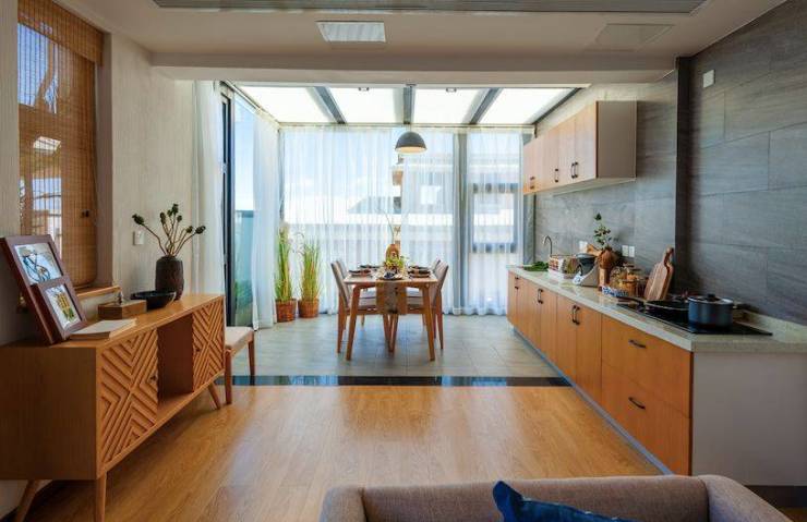 庭院、厨房、餐厅、客厅一体化设计