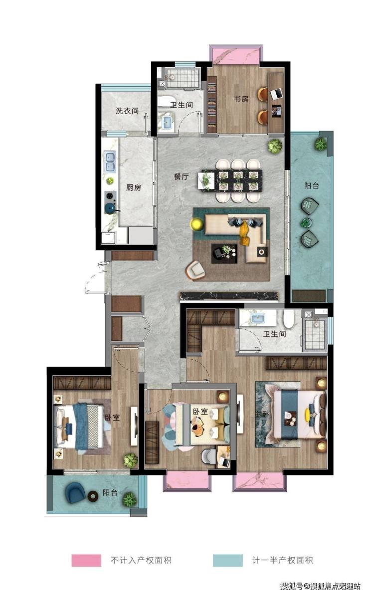B户型:建面约140㎡,四室两厅两卫