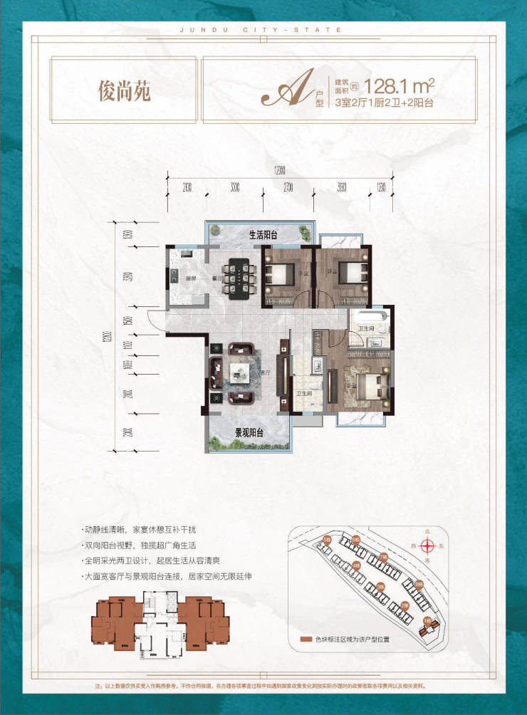 【高层视野】:独立高层,前后几乎无遮挡,视野开阔,俯瞰山水与繁华。