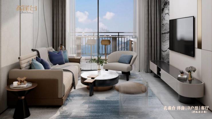 巨幕客厅:55㎡奢阔客厅,约18㎡观景阳台,俯瞰蔚蓝泳池大景