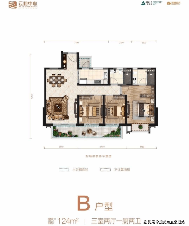【9栋】精装,2T3,153㎡ 端户,124㎡ 中户(售罄)