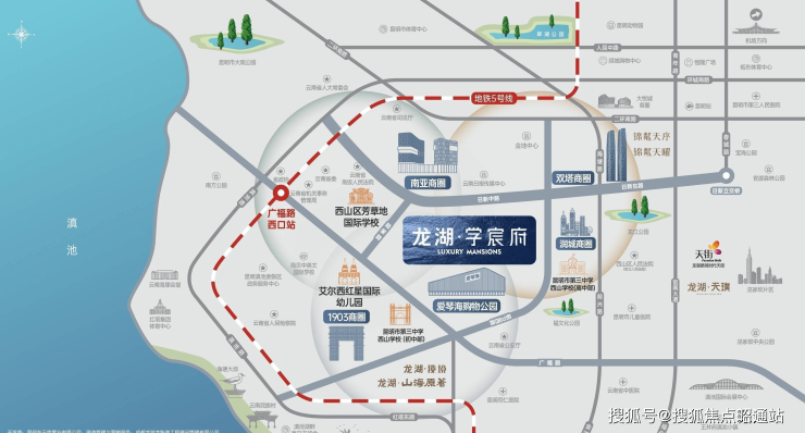 项目择址日新路中轴,三横三纵立体交通,快速接驳二环快速路、昆明站、市中心、滇池,便利交通从容生活。