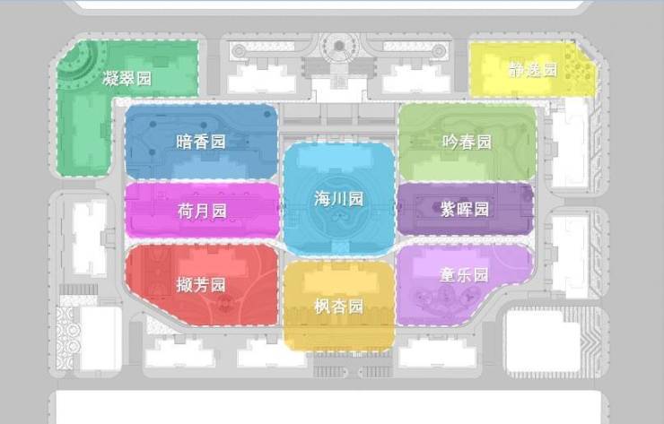十大园林:海川园、吟春园、枫杏园、荷月园、暗香园、童乐园、静逸园、撷芳园、紫晖园、凝翠园