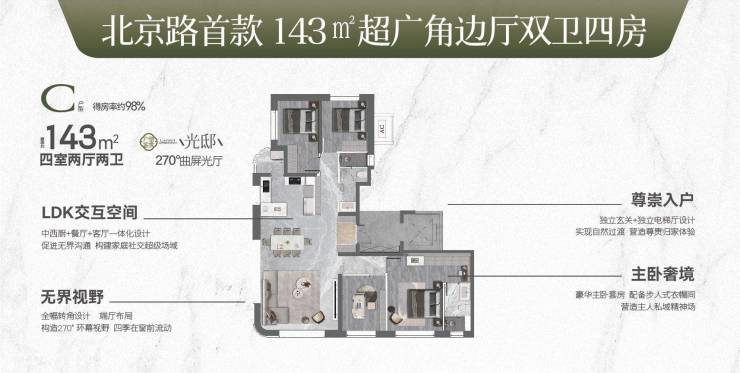 建面约143㎡ 四室两厅两卫 | 得房率约98%