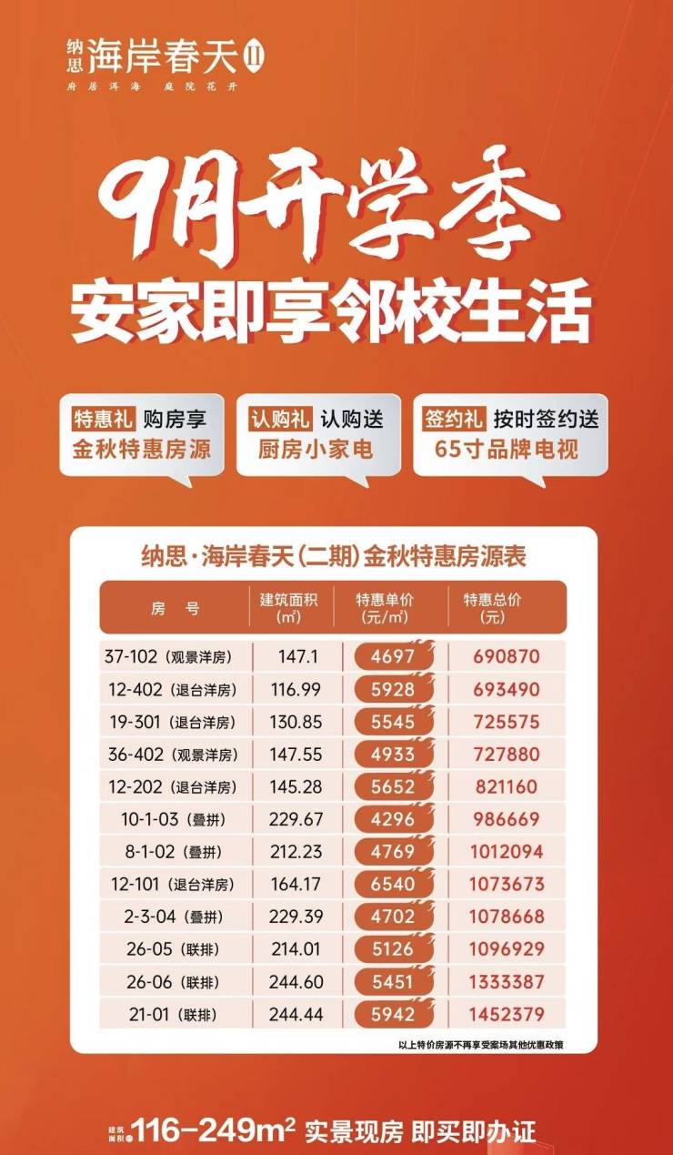 纳思·海岸春天,建面约116-249㎡实景现房,即买即办证!关注纳思·海岸春天的朋友可前往售楼处现场看房,咨询房源信息请拨打电话4001560036 转 432061!