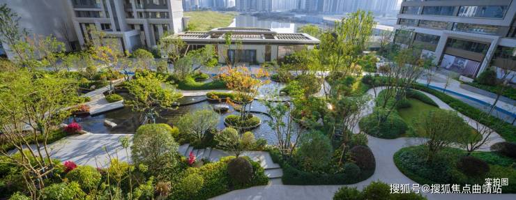 内部打造共约8800㎡的双景观花园,引自然为脉贯穿轴线节点,在南北双花园中,分别以胸径约26公分的蓝花楹和树形优美的乌桕,辅以上百种珍贵树种,臻造两大主题树群。并以精选石材,采用古典造园叠山理水手法打造而成的水景穿插其间。