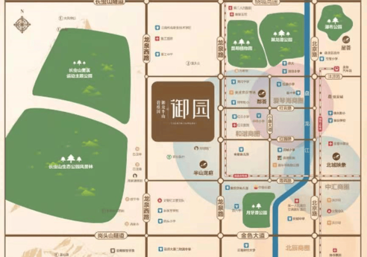 项目坐拥约3300亩长虫山生态公园,尽享纯天然负氧离子氧吧,周边有五大主题公园环绕,分别是长虫山运动公园、昆明市植物园、黑龙潭公园、麦溪运动主题公园、月牙潭公园。北市区的城市绿肺,让您的生活每天都充满了绿色。