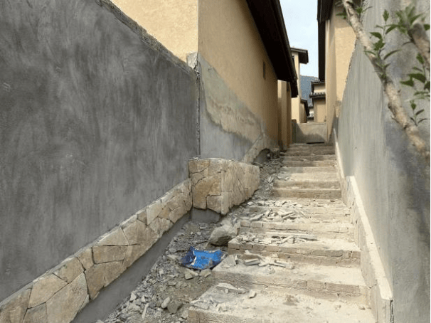 5.室外景观:乔木种植完成90%,室外路面硬化完成90%,路面踏步砌体完成;