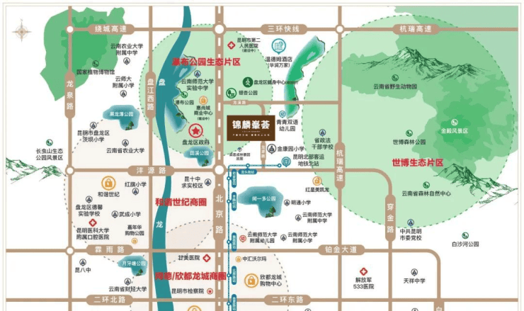 公园环伺:“亚洲第一大人工瀑布公园”,银杏主题公园;黑龙潭公园;田溪公园;金江公园;长虫山生态公园;月牙塘公园;云南野生动物园;昆明植物园;闻一多公园;钱沣公园,清新鲜氧萦绕,山水美景相伴,尽享都会春城生态大美。