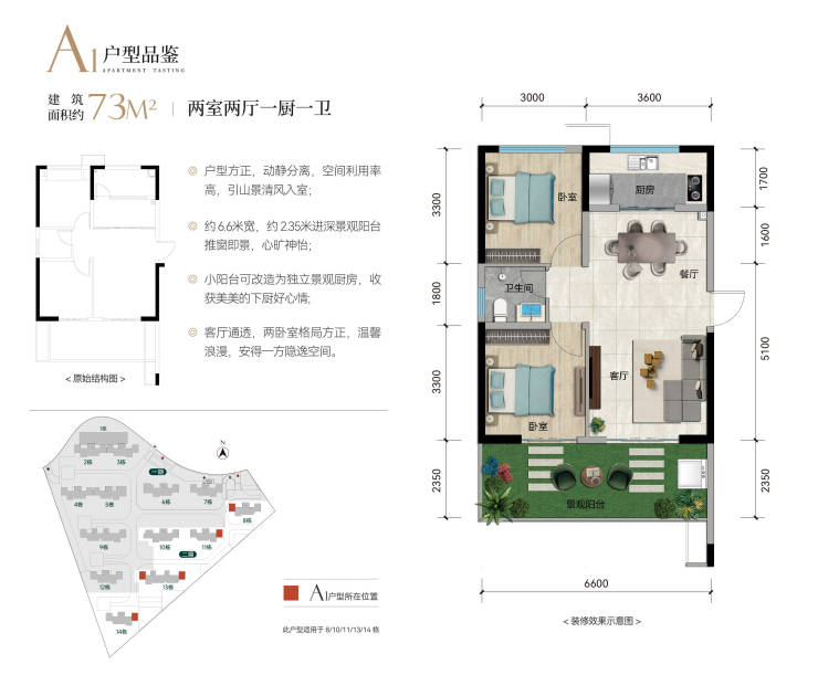 全系旅居产品,户型方正,无空间浪费,可改造空间大,且得房率高,拥有大面积阳台、花池优享空间,购房者能够获得更多的实际使用面积,购房的性价比和居住满意度全面升级。