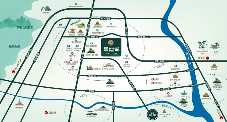 •优质医教配套:毗邻西双版纳州人民医院分院、允景洪小学万达校区、云南衡水实验中学、曲靖一中版纳校区、嘎栋中心小学等。