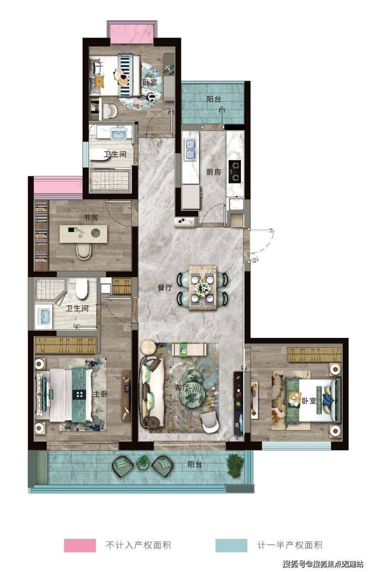 B户型:建面约140㎡,四室两厅两卫