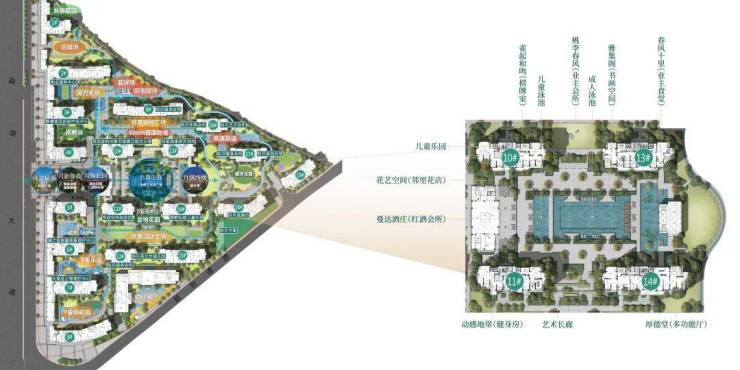 静:槟榔谷、雀羽花田、邻里休闲广场、邻里活动广场、台地花园